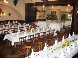 Unsere Jagdstube ist so flexibel das Sie wahlweise für 35, 75 oder 110 Gäste zur Verfügung steht.